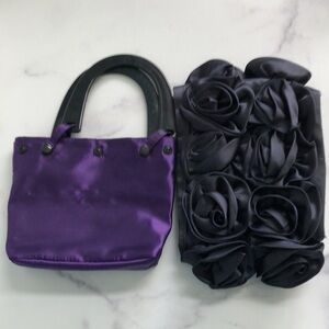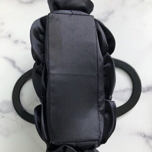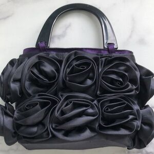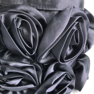 For Your Ease Only Black Satin Rosettes Evening Purse Handbag
