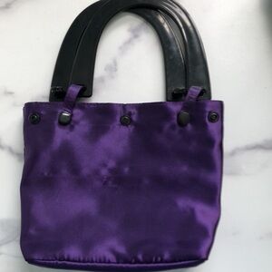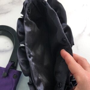 **Detachable purple lining / Removable hard handles (snap off) converts to a clutch handbag.** Awesome feature and a really cute bag! (you might consider using the purple lining with the handle as it's own little bag.)