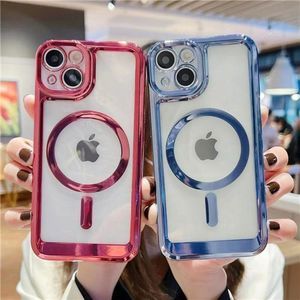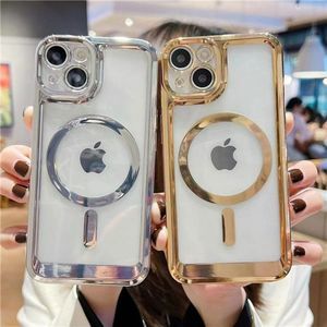 For iPhone 14 13 Pro MAX 12 11 Plating Magnetic Slim Cover Clear Mag Safe Case