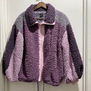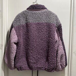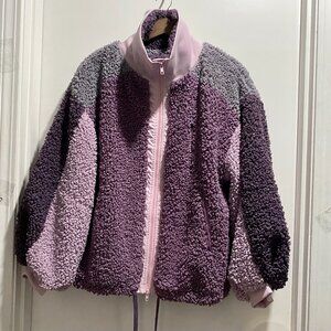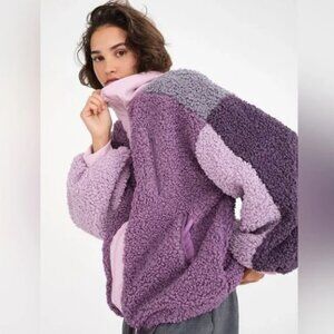 For love & Lemons Sherpa Color Block Y2k Cozy Zip Up Oversized Bomber Jacket S