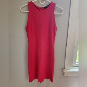 For Love & Lemons Rosarito mini dress, hot pink. scalloped edges. 95% rayon and 5% spandex (does have some stretch to it), 29" long. Center back zipper