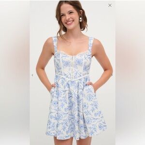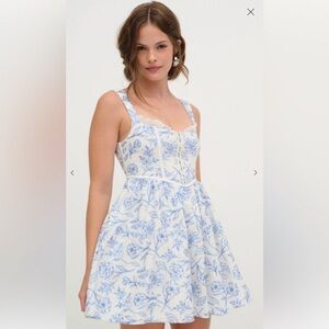 For love and lemons Maisie Floral Blue and White mini Dress