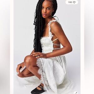 The perfect blend of sweet and sultry, this stand-out midi dress is featured in an apron-inspired design with lace detailing, super strappy back, and sheer bottom piecing for added dimension.
