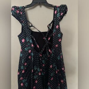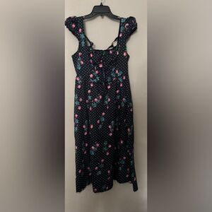 Add the perfect piece to your classics collection with this fun and flirty midi dress featured in smock-inspired silhouette and floral, polkadot print with exaggerated shoulder straps and back detail for an added special touch.