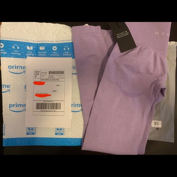 Hey girl, here are your NVGTN lilac leggings all packaged up! They’re on your way to you today. I hope you love them and let me know when you get them safe and sound ❤️