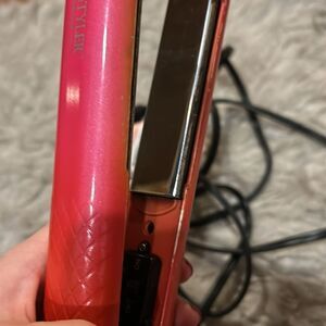 For styler pink and orange ombré flat iron, slight wear on plats and edges of flat iron as shown an in pictures