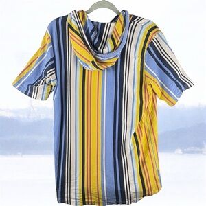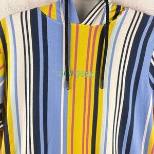 For the People 90s Vertical Striped Short Sleeve Hoodie Colorful New York L