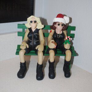 Get ready to rev up your decor with this Diana Manning Limited Edition Family of Friends Biker Babe figurine set! These fierce and fabulous biker babes are here to bring a whole lot of attitude and charm to your collection. Complete with their own bench, this duo is perfect for anyone who loves unique, edgy pieces. 🖤