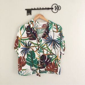 For the Republic Hawaiian print crop top tie button down shirt size Medium