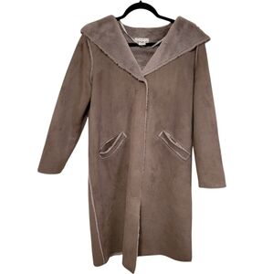 For the Republic Long Length Faux Suede Fur Lined Coat with Hood Gray Size Small
