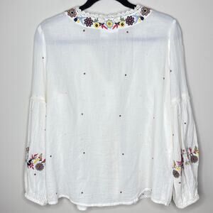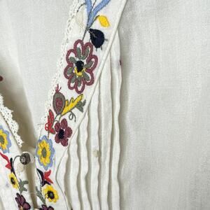 For the Republic Medium Boho Embroidered V-Neck Button-Front Pintuck Top Blouse