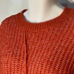 For the Republic SZ M Orange Red wool blend soft comfy loose weave crew neck sweater