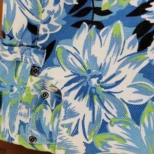 These Bermuda shorts are made with quality 98% Cotton, 2% spandex. Great for your next golf game. 5 pockets. size 8, waist flat measurement is 16". Inseam is 12". Top to bottom length is 21". Great used condition and quality.