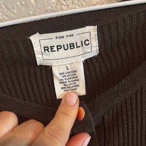For the republic deep olive green Ribbed Button-Down Top