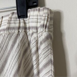 For Cynthia Linen Blend Chevron Stripe A-Line Skirt. Size Medium. Cream with light gray stripes. Elastic waist in the back. Lightweight. 55% Linen 45% Viscose. Excellent used condition.
