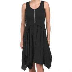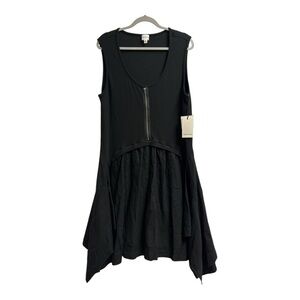 ForCynthia Linen Blend Zip Front Midi Dress Black Size 2X NWT
