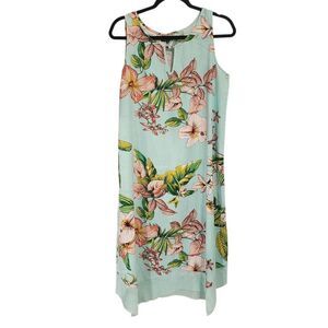 For Cynthia linen blend multicolor Tropical floral print sleeveless midi dress excellent condition 42" bust 44" waist 45" long