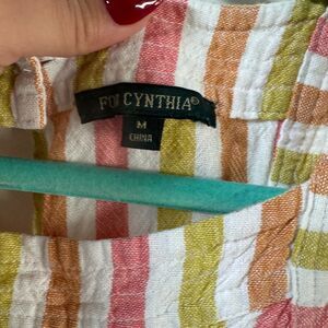 Vibrant sleeveless dress with multicolor stripes. Ideal for casual wear.