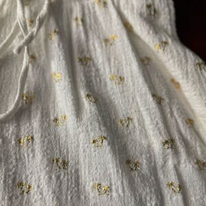 For Cynthia White Dress with Gold Palm Tree Print NEW Size Small