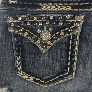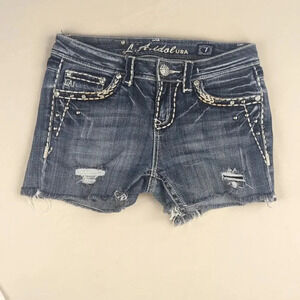 LA Idol juniors size 7 denim shorts with embroidered accents, studs, and bling!
