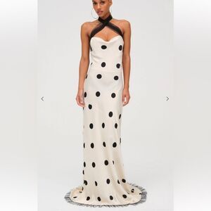 For Love And Lemons Dorothy Strapless Cream Black Polka Dot gown Dress Revolve S