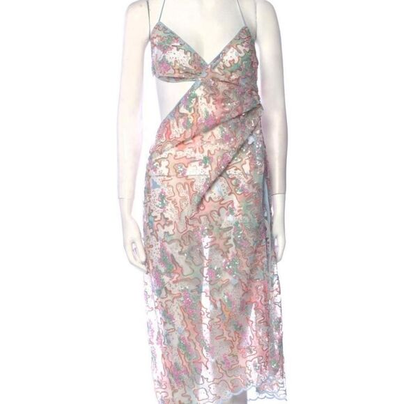 For Love And Lemons One Shoulder Multicolor Lace Dress