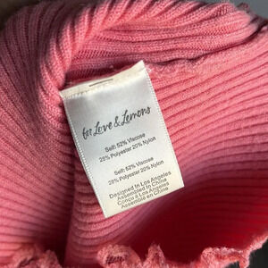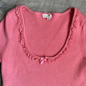 Calla pink ribbed knit crop top. Stretchy & very soft with dainty ruffle lace edges and a bow in the center