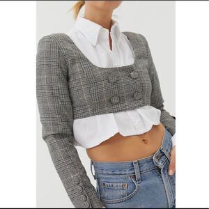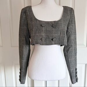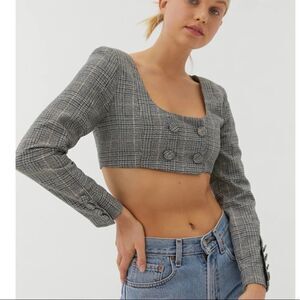 For Love & Lemons Frankie Plaid Crop Top Grey Wool Blend Large MSRP $189