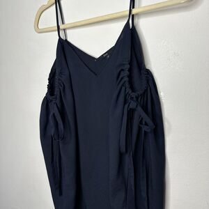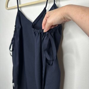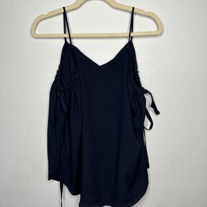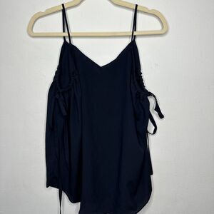 Fora Black Spaghetti Strap V-Neck Cami Ruche & Tie Under Arms Flowy Tank Top S