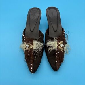 Foratempo Vintage Embellished Brown Women's Slides with Kitten Heels Size 36/5.5