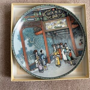 These rare & beautifully hand painted plates are a historical masterpiece yours to own, display and pass down to future generations! Scenic Dynasty era unique to nowhere else in the world featuring Jade Belt Bridge, The Long Promenade, The Seventeen Arch Bridge & Boaters on Kumming Lake remind us of a mystical and precious time long ago. Includes the background story of each unique scene, original box meticulously stored in a pet & smoke free home.