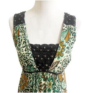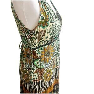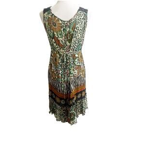 Forbidden Safari Print Dress Midi Size Medium Studded Neckline Tan Black Hippie