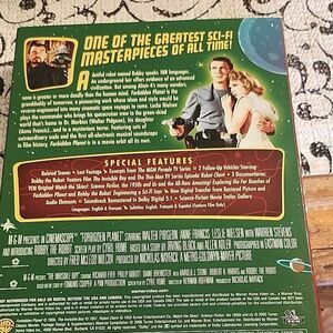 Collectible Forbidden Planet tin box, 2 DVD's , lobby cards and toy robot. The two movies are The Forbidden Planet and the Invisible Boy. Features vibrant sci-fi artwork. Perfect for fans and collectors. There are 8 Lobby Cards for the Forbidden Planet and 8 for the Inviible Boy.