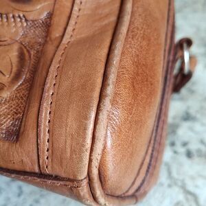 Force Ten Classic Floral Hand Tooled Leather Crossbody Bag Zip Closure Lined