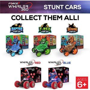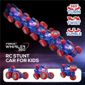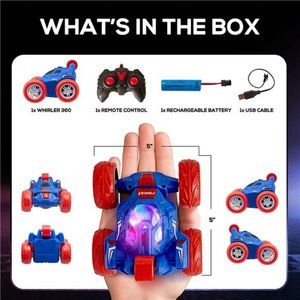 MINI RC STUNT CAR FOR KIDS: The Whirler 360 Stunt Car features a rotating front wheel axle for 360° flip stunts and 360° wheel spins at hyper speed! This small rc stunt car has 5 wheels for fast driving, standing wheelies, flips, and stunts over multiple terrains; can be used indoor or outdoor. Rechargeable mini stunt cars includes 2.4 GHz remote control and LED lights