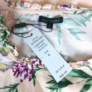 Forcynthia Linen Blend Floral Ruffled Top Peach Small