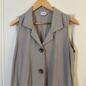 Tags: ruched pocket button up collared dress lagenlook artsy art-to-wear patch patchwork collar gray grey beige linen blend viscose