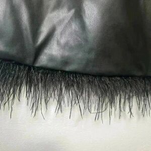 Forcynthia Sleeveless Feather Trim PU Mini Dress size S