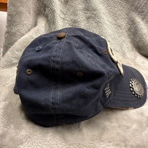 Dark blue cap featuring Ford logo. Distressed design with embroidered details.