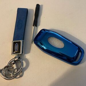 Ford key fob Keychain in Blue Leather & fob case cover in Blue NWT