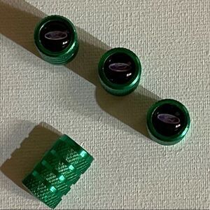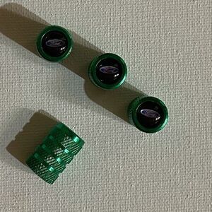 Ford logo fob keychain in Green leather and valve Stem caps in green. New in Pack
