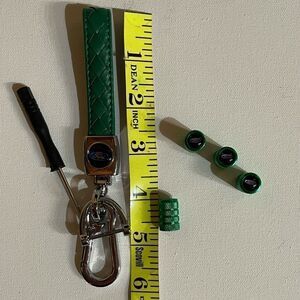 Ford logo fob Keychain in green leather & valve Stem Caps in green NWT