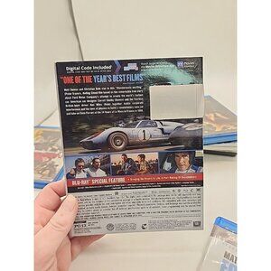 This Blu-ray disc of "Ford V Ferrari" is a great addition to any movie collection. It is a PG-13 rated drama movie that tells the story of the epic battle between Ford and Ferrari at the 24 Hours of Le Mans in 1966. The Blu-ray format provides high-quality visuals with an aspect ratio of 2.39:1.