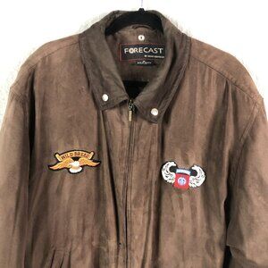 Forecast Biker Jacket Mens XL Brown Faux Seude Patches Live To Ride Wild Breed