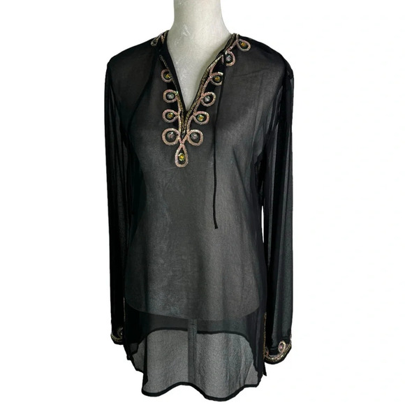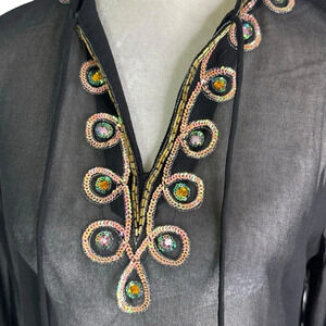 Forecast Sheer Beaded Sequin Swim Cover Up Top Tunic Black Size S NWT