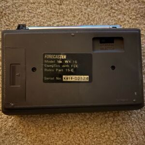 Forecaster Model No. WX-16 3 Channel Weather Station. Light comes on, but I got no static or stations to come in. Sold as is.