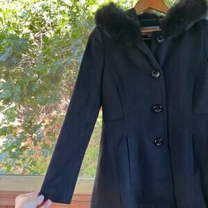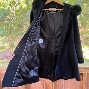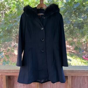 Forecaster Of Boston Women's Fox-Fur Trim A-Line Walker Coat Black Size 4