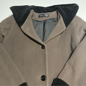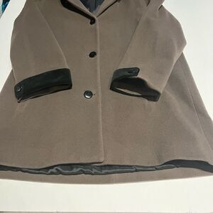 Excellent condition, looks new. Wool Blend. Mid Length. Front pockets. Button close. Shoulder padding.