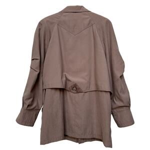 - Classic trench-style jacket in a neutral taupe shade