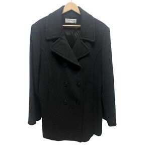 Elegant dark gray peacoat crafted from a premium wool cashmere blend, perfect for cold weather. Its timeless design ensures warmth and style, making it an essential piece in your wardrobe. Excellent preowned condition.